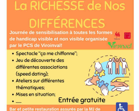 Le jeudi 27 novembre, Viroinval vous invite à une journée de sensibilisation autour du handicap visible et invisible : La richesse de nos différences. Spectacle, rencontres avec les associations, ateliers participatifs, mises en situation, animations pour les familles… Une journée riche en découvertes et en échanges, dès 9h au Centre culturel Action-Sud. Entrée gratuite !Lire l'info [La richesse de nos différences]Café signes Wapi